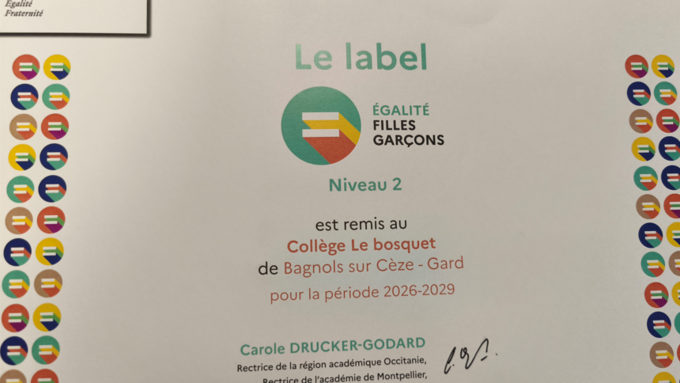 Nous sommes très fiers, pour notre première candidature, d'avoir obtenu le niveau 2 de la labellisation égalité filles/garçons. Cette reconnaissance de l'engagement des équipes et des élèves est une belle réussite pour tous. Bravo.